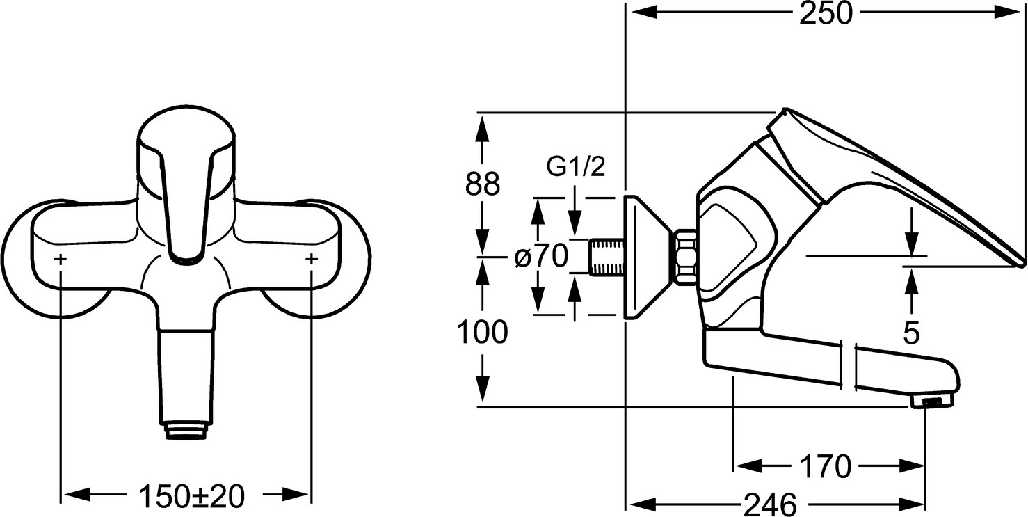 HANSA Waschtisch-Wand-Einhebelmischer HANSAMEDICA schwenkbar, Hebel lang, Ausladung 246 mm, chrom