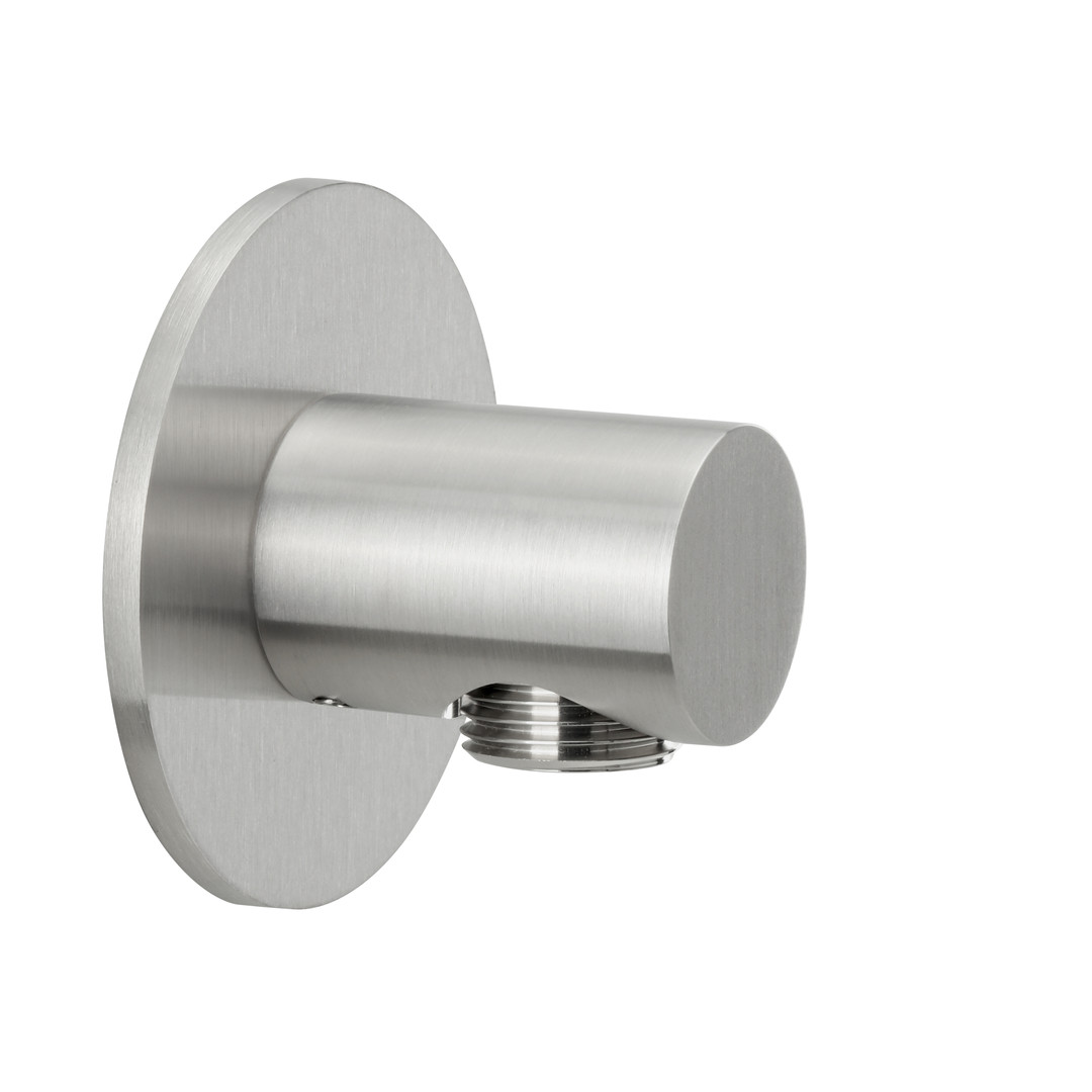 Herzbach Brauseanschlussbogen Living Spa seven round 1/2", Rosette d= 70mm, Edelstahl gebürstet