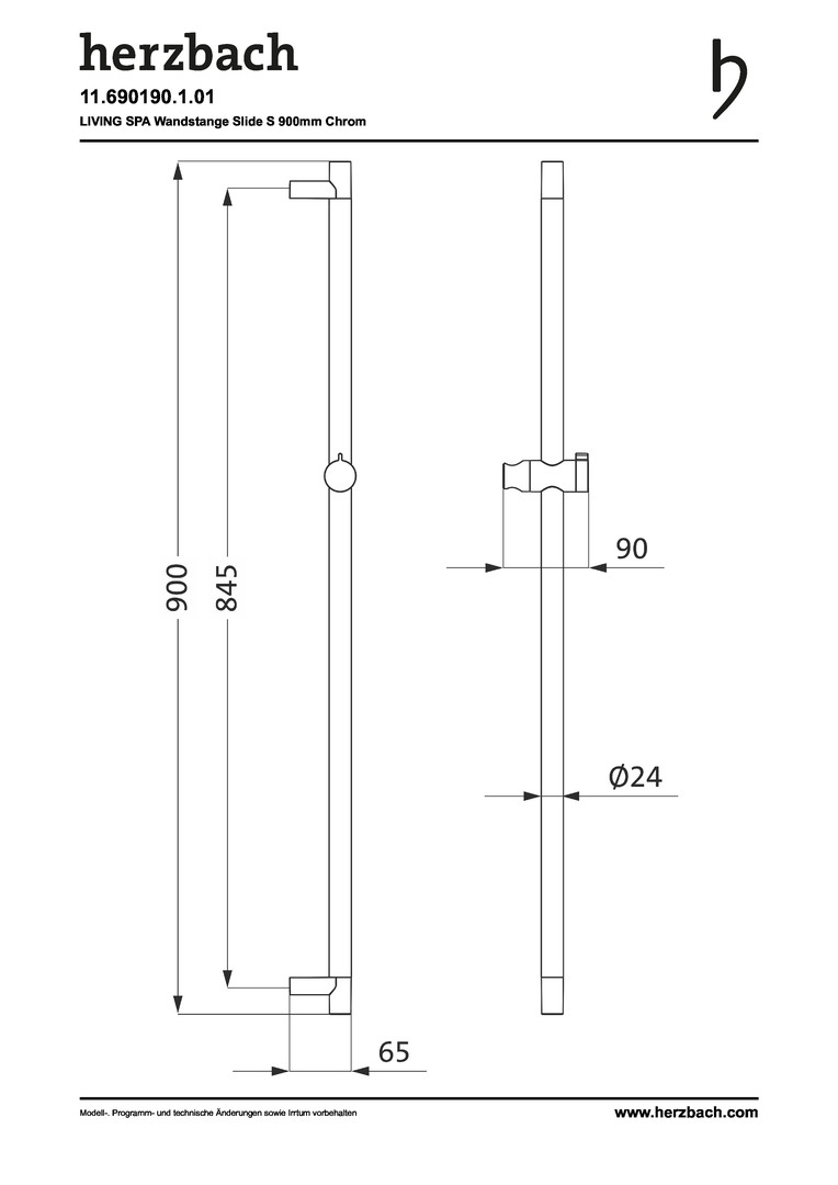Herzbach Brausestange Living Spa Slide S 900mm, chrom