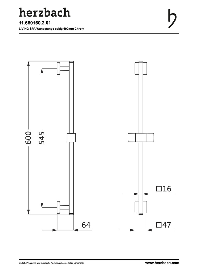 Herzbach Brausestange Living Spa square 600 mm, chrom HF11660160201