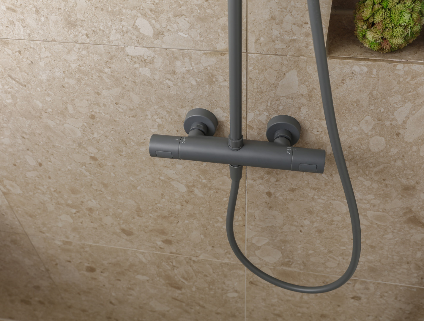 Herzbach Duschsäule Living Spa d= 250mm, mit Brause-Thermostat und Stabbrause, grau matt HF23988250106