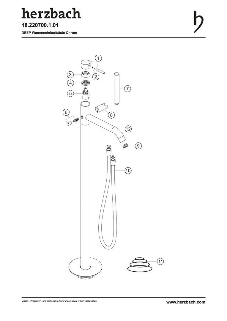 Herzbach Fertigmontageset Deep Wanneneinlaufsäule, bodenstehend, mit Brausegarnitur, chrom