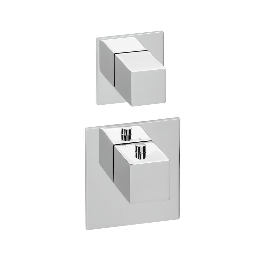 Herzbach Fertigmontageset Logic XL 1/1+ Thermostat-Modul, 1 Blende eckig, Griffe eckig, chrom HF11521010201
