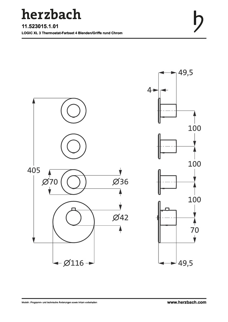 Herzbach Fertigmontageset Logic XL 3 Thermostat-Modul, 4 Blenden rund, Griffe rund, chrom HF11523015101
