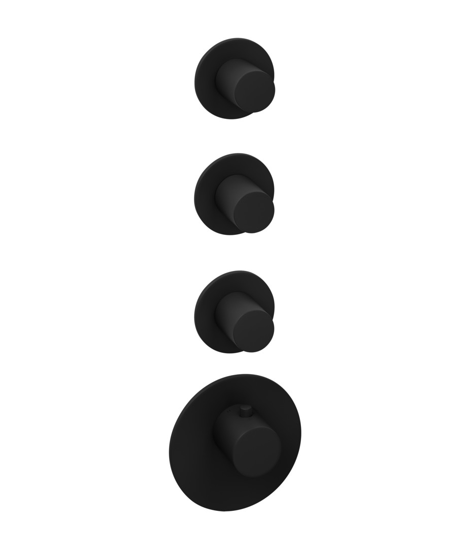 Herzbach Fertigmontageset Logic XL 3 Thermostat-Modul, 4 Blenden rund, Griffe rund, schwarz matt