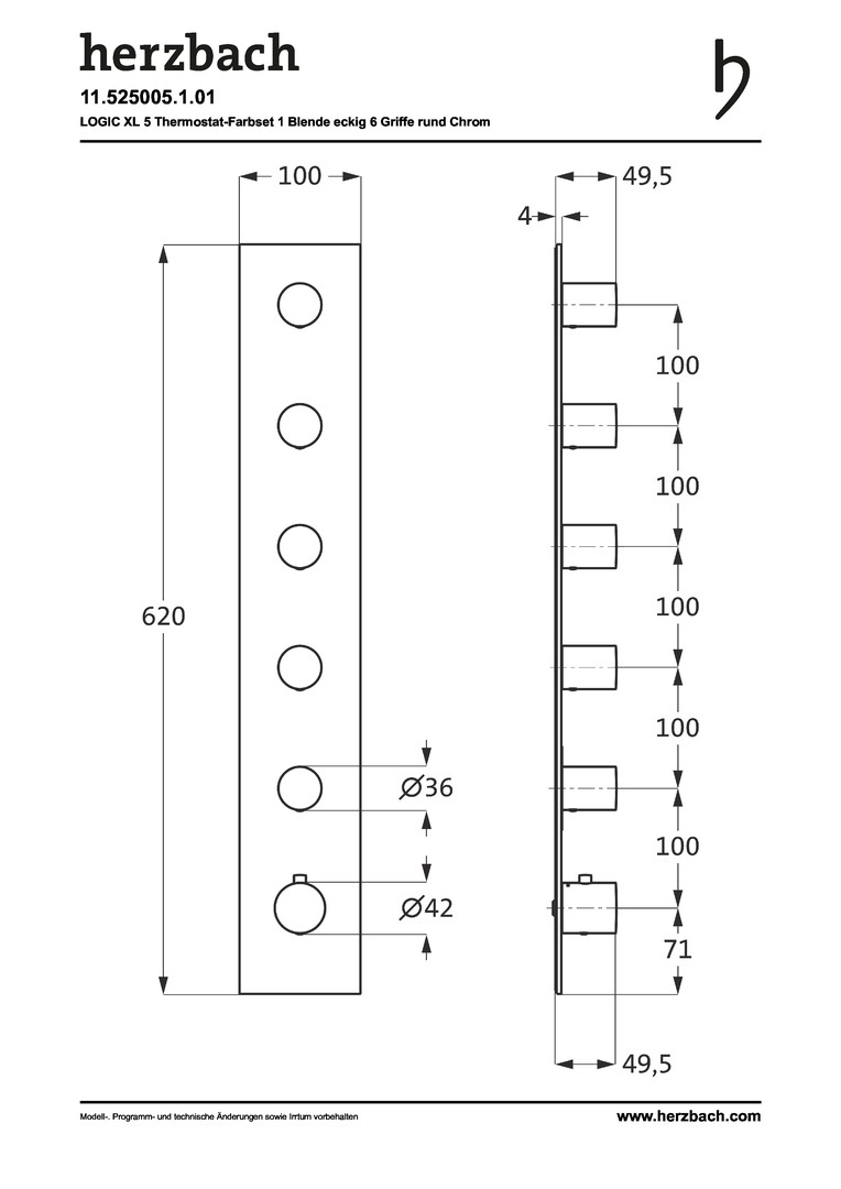 Herzbach Fertigmontageset Logic XL 5 Thermostat-Modul, 1 Blende eckig, 6 Griffe rund, chrom HF11525005101