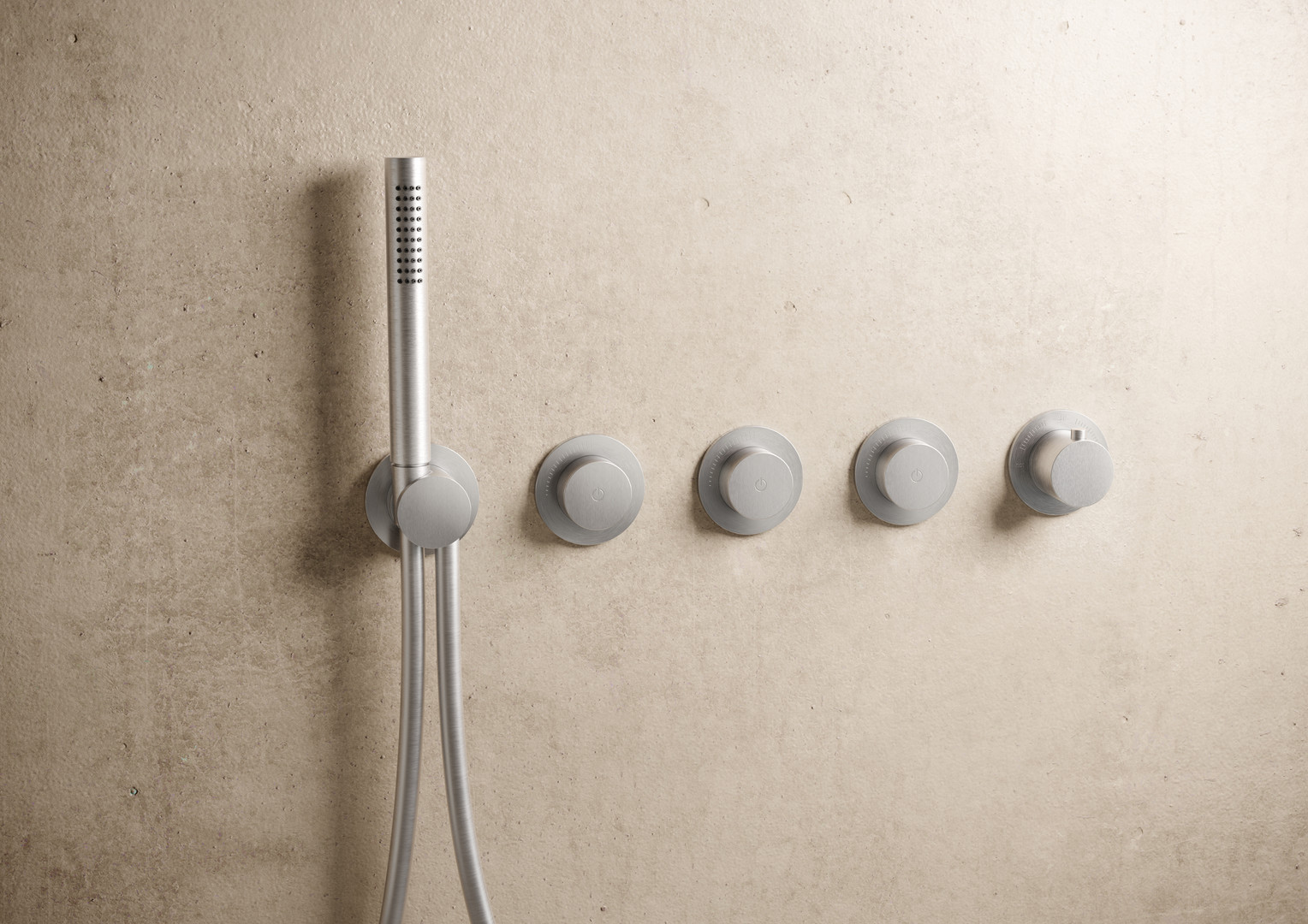 Herzbach Fertigmontageset MODUL7 PUSH Thermostat, mit Stabhandbrause, 3 Verbraucher, Edelstahl gebürstet