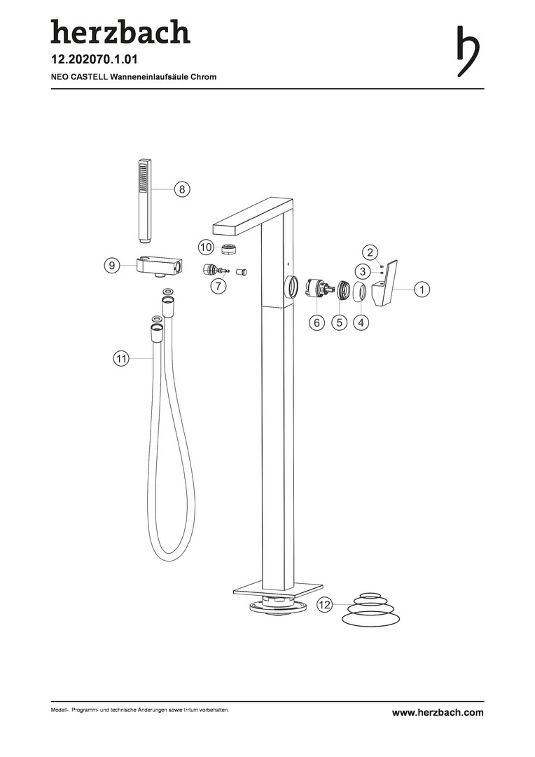 Herzbach Fertigmontageset NeoCastell für Wanneneinlaufsäule, bodenstehend, mit Brausegarnitur, chrom