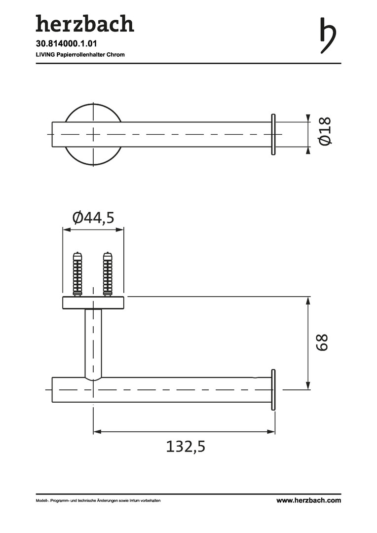 Herzbach Papierrollenhalter Living Wandmontage, runde Rosette, chrom HF30814000101