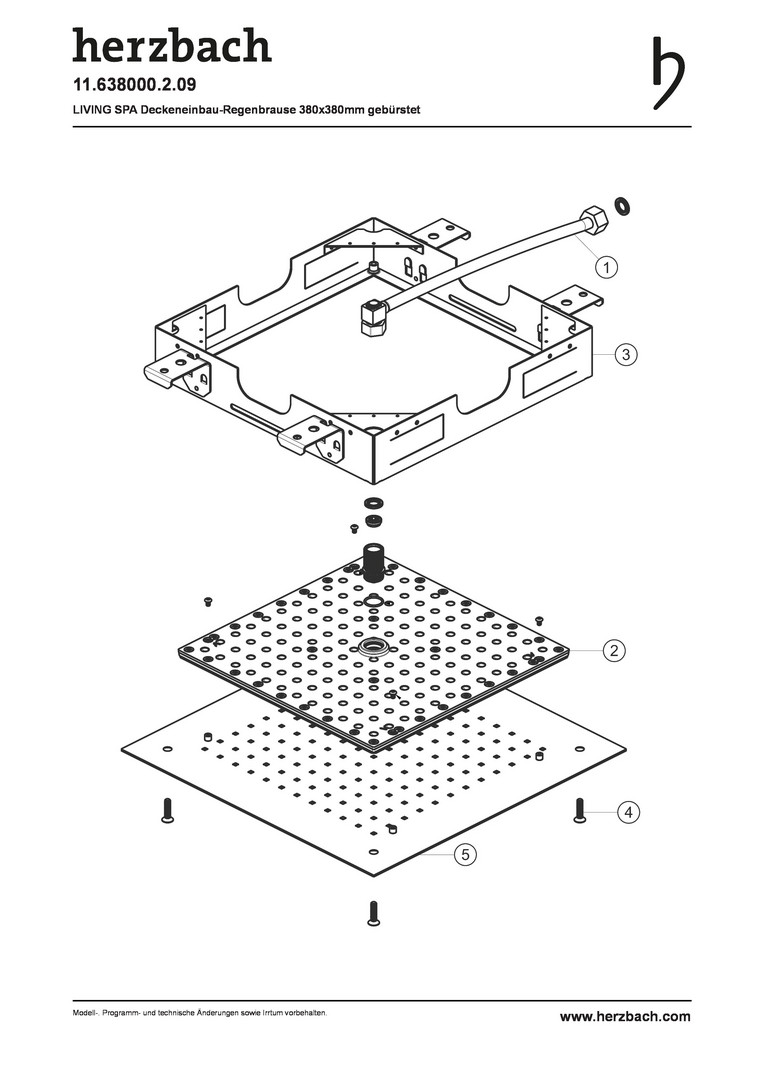 Herzbach Regenbrause Living Spa 380 x 380 mm, Deckeneinbau, 1-strahlig, Edelstahl gebürstet HF11638000209