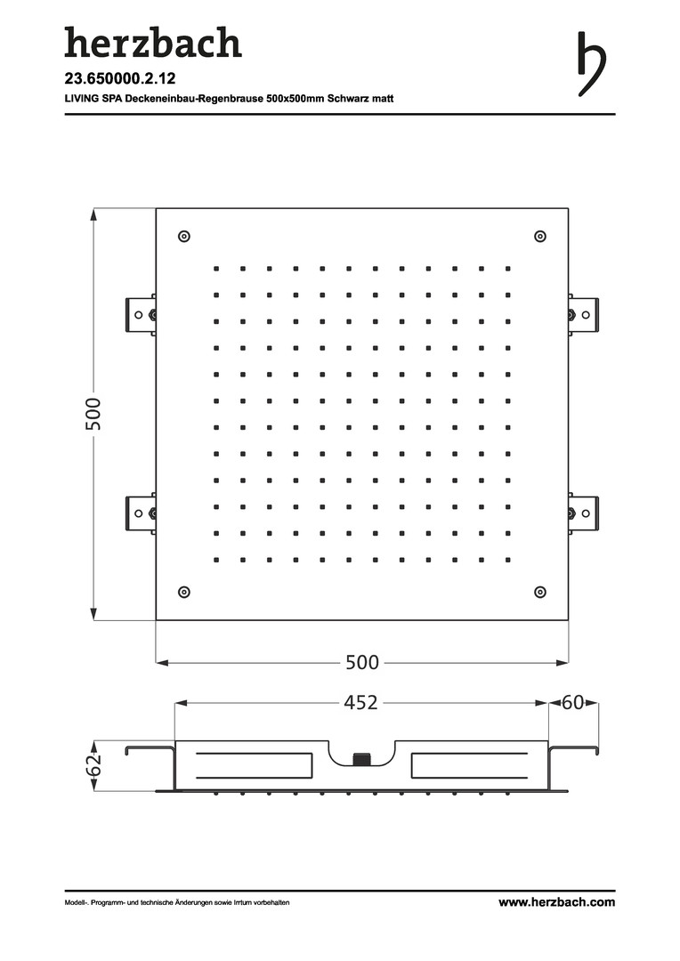 Herzbach Regenbrause Living Spa 500 mm, schwarz matt, Deckeneinbau, 1-strahlig