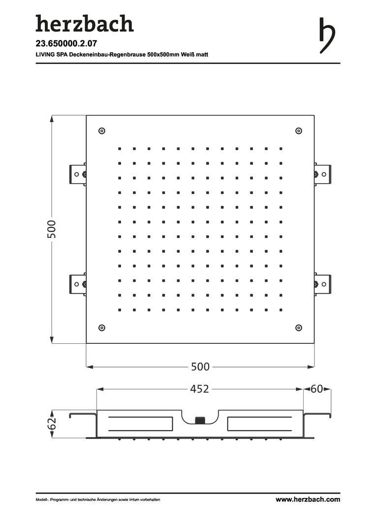Herzbach Regenbrause Living Spa 500 mm, weiß matt, Deckeneinbau, 1-strahlig HF23650000207