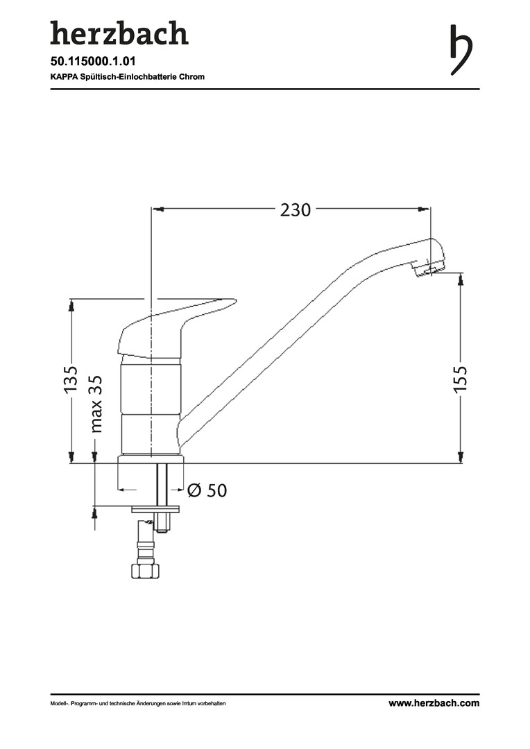 Herzbach Spültisch-Einhebelmischer Kappa schwenkbarer Auslauf 135Grad, chrom
