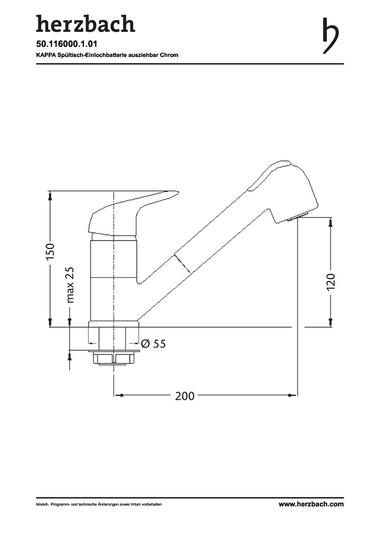 Herzbach Spültisch-Einhebelmischer Kappa schwenkbarer Auslauf 135Grad, chrom