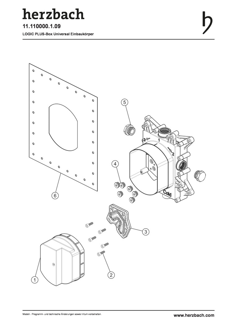Herzbach Universal-Einbaukörper Logic Plus für UP-Einhebelmischer, Abgänge rechts/links/oben