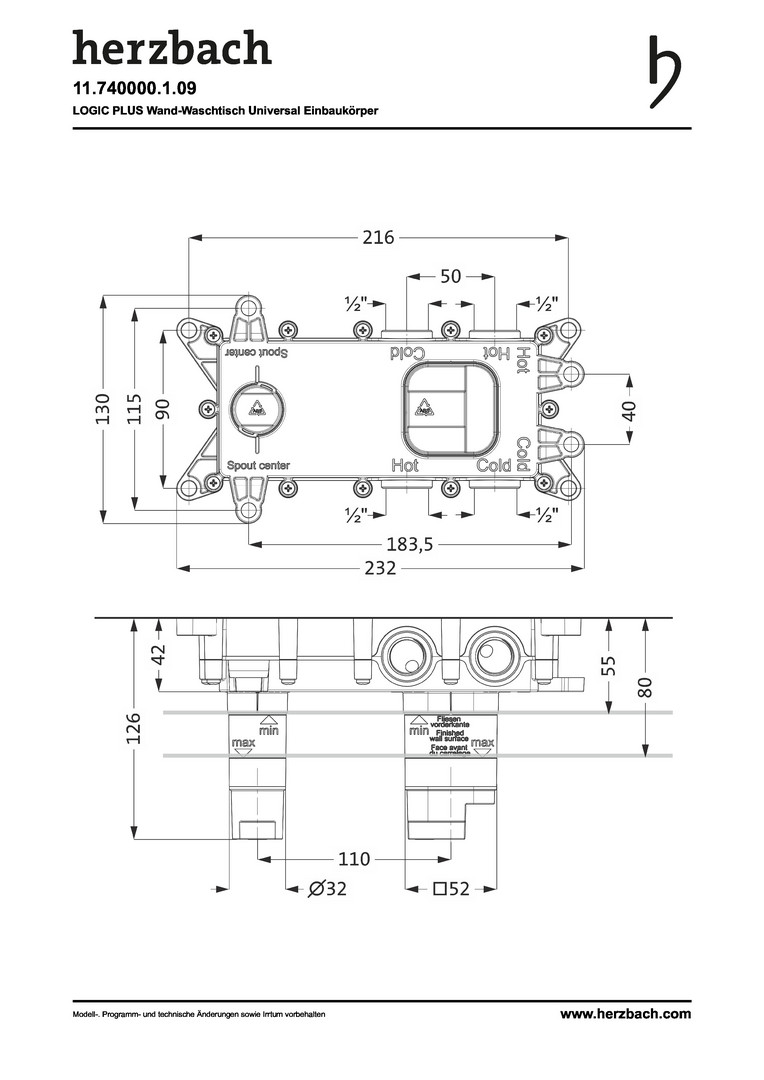 Herzbach Universal-Einbaukörper Logic Plus für UP-Einhebelmischer