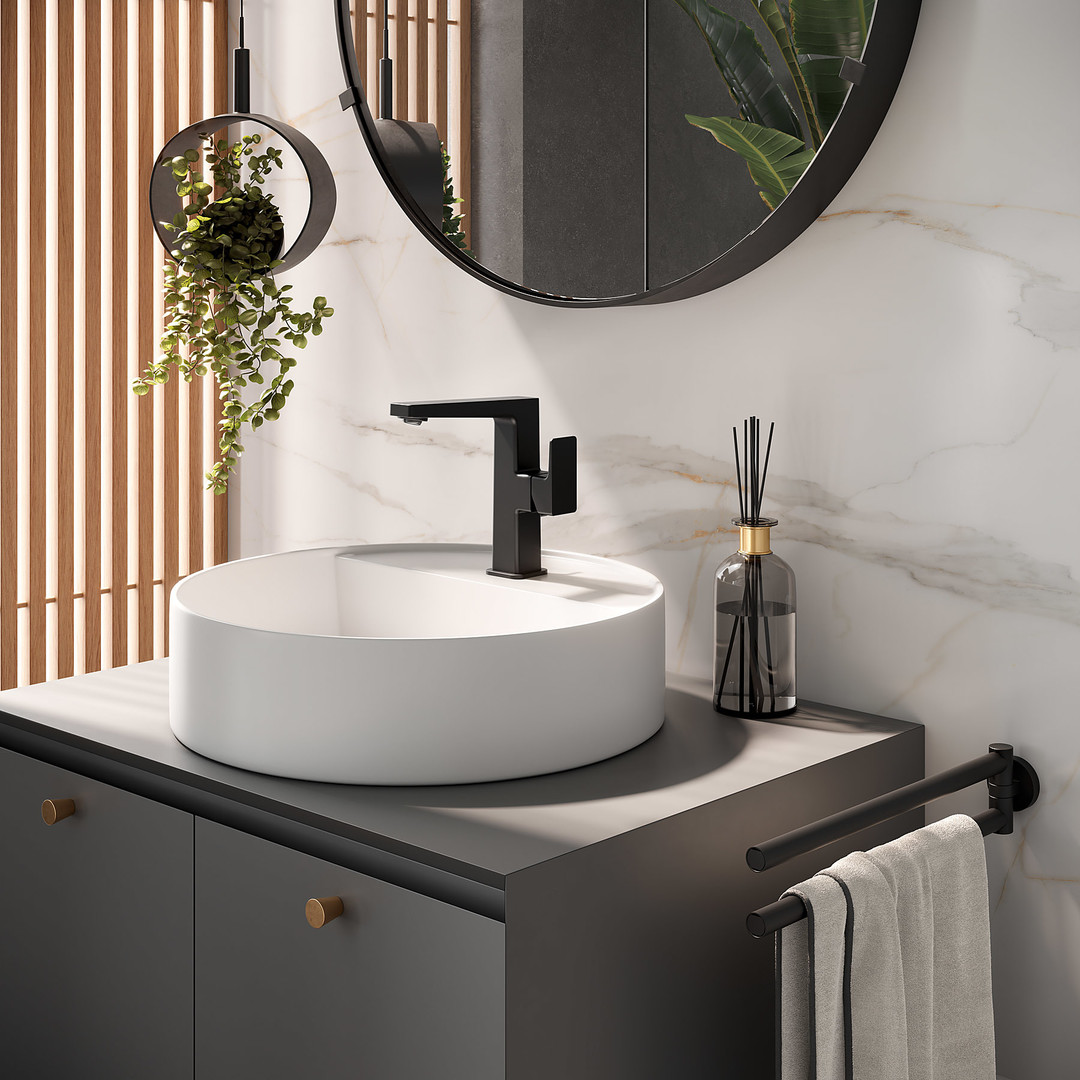 Herzbach Waschtisch-Einhebelmischer Ceo L-Size, Griff seitlich, schwarz matt