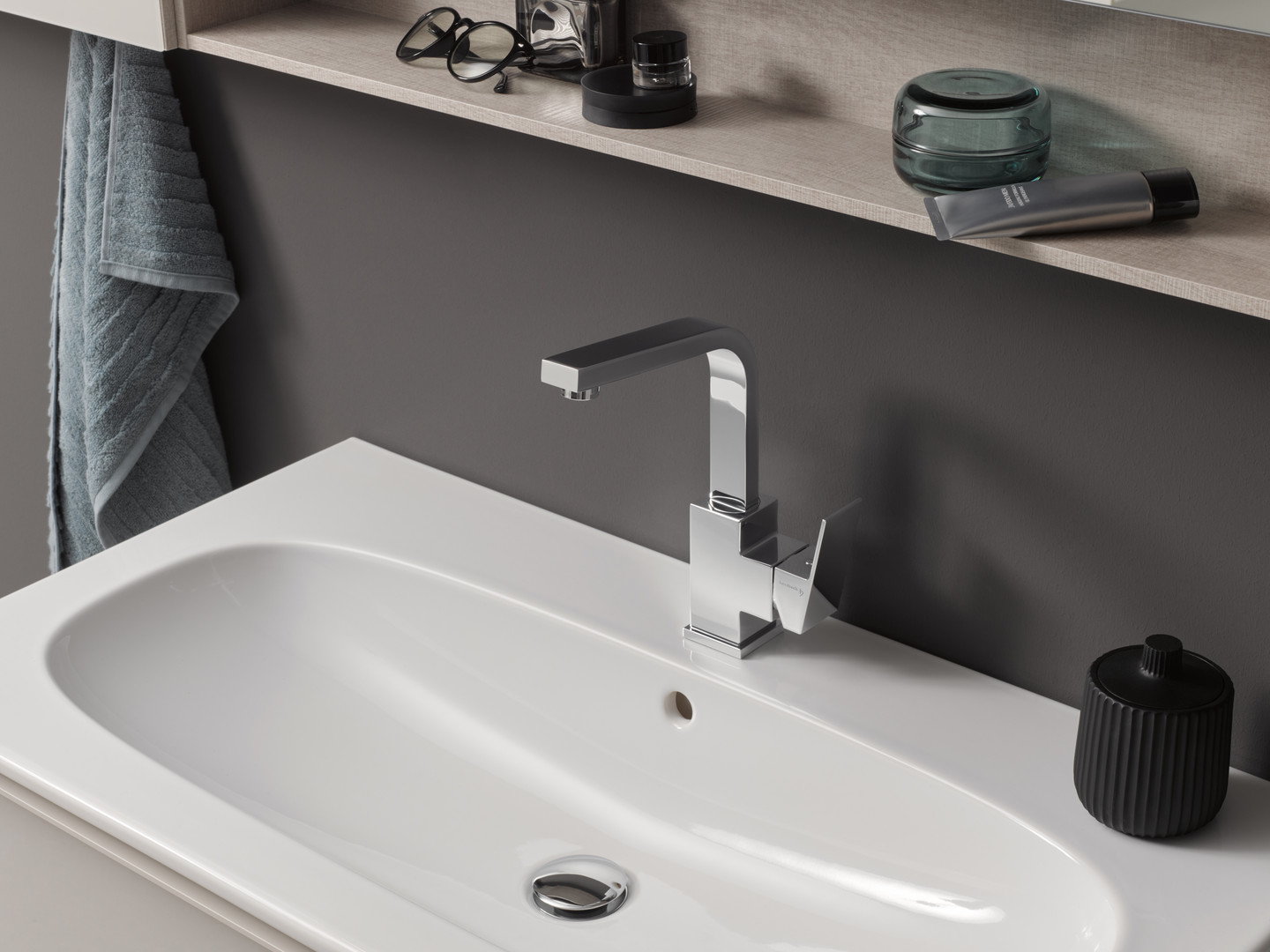 Herzbach Waschtisch-Einhebelmischer NeoCastell M-Size, schwenkbarer Auslauf, ohne Ablaufgarnitur, chrom