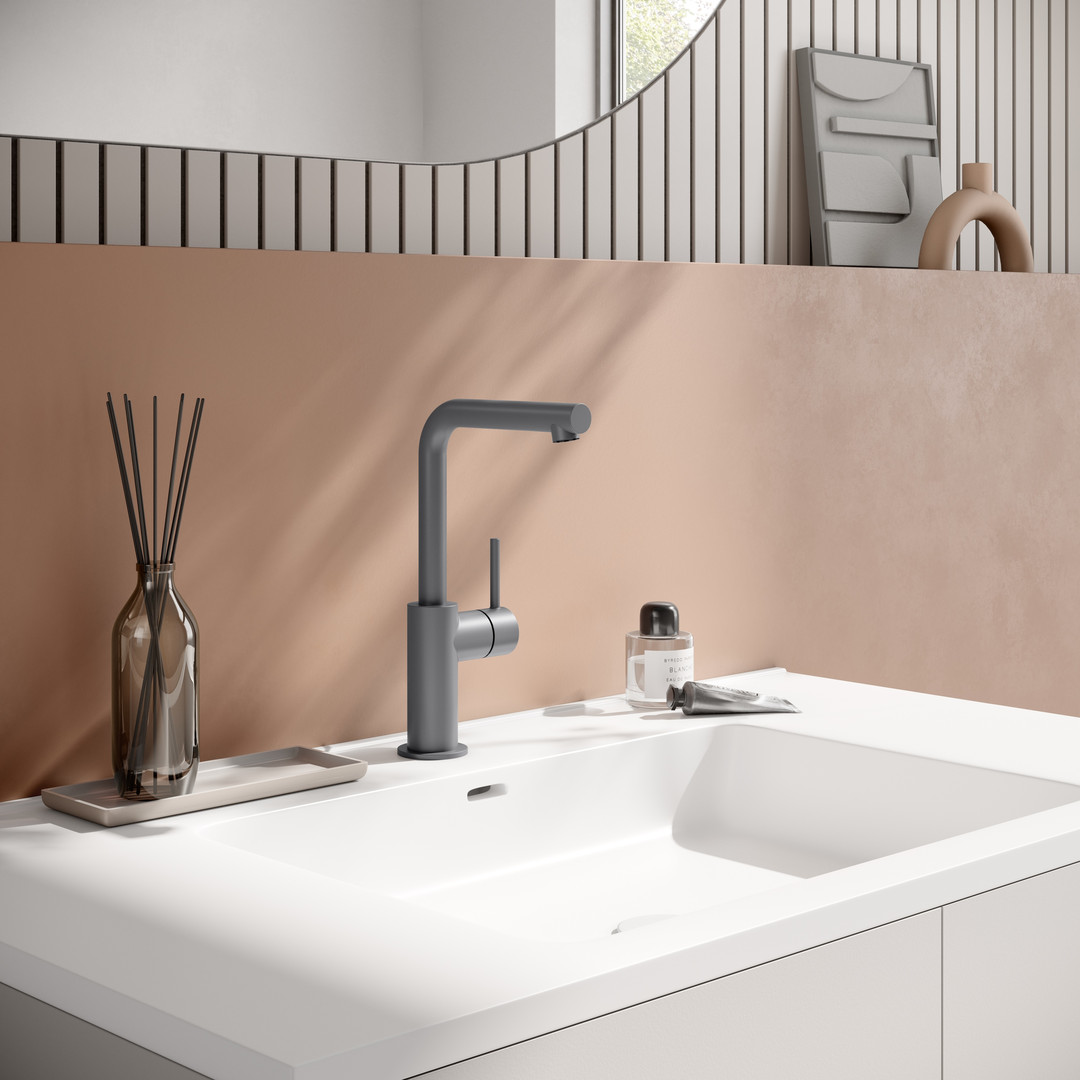 Herzbach Waschtisch-Einhebelmischer Siro L-Size mit schwenkbarem Auslauf 227cm, ohne Ablaufgarnitur, grau matt