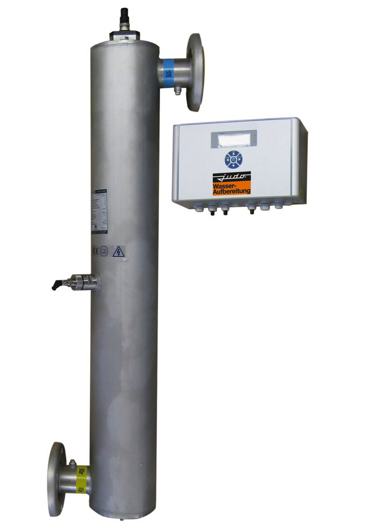mit DVGW und ÖVGW Prüfzeichen. Lieferumfang: Edelstahl-Reaktor mit Hochleistungs-UV-Strahler, kalibrierte UV-Messeinrichtung mit Anzeige in W/qm und Normsignal-Ausgang, ausbaubares Strahlerschutzrohr, SOFTSTART-Zündsystem, Digitaler Betriebsstunden- und Schaltimpulszähler, Reinigungs- und Summenstörmeldung, Spül- bzw. Entleerungsanschluss, Schaltkontakt für Absperrmagnetventil und Spülventil (Magnetventile nicht im Lieferumfang). Spannungsversorgung 230 V/50 Hz