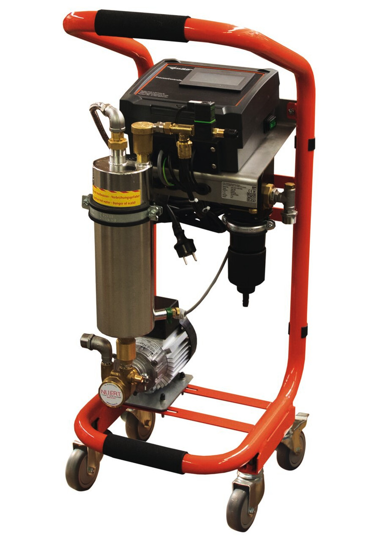 arbeitet nach dem Prinzip der dynamischen Vakuum-Entgasung, für Heizungs- und Kühlwasser bis 5-60 °C, Betriebsdruck 1,5-5,0 bar, betriebsbereite vorgefertigte und kompakte Einheit, intern hydraulisch verrohrt und elektrisch verdrahtet, zur Aufnahme folgender Baugruppen: Heißwasser-Vorfilter, Edelstahl-Sprührohr zur Vakuumerzeugung mit Entgasungsventil, geräuscharme Rotationspumpe, 2 Magnetventile zur Absperrung der jeweiligen Zulaufrichtung, außenliegender Anschluss für Nachspeisung, speicherprogrammierbare Steuerung für den vollautomatischen Betrieb
