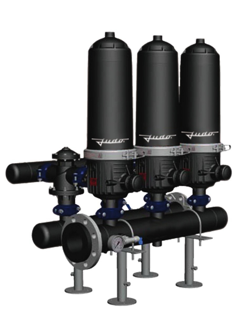 zur Filtration von feinkörnigen und festen Verunreinigungen von Brauchwassern, automatisch rückspülende Filtersysteme mit 24-192 cbm/h Filterleistung, Filtersysteme mit bis zu 8 kombinierbaren Multiflex-Filterelementen, Gehäuse aus glasfaserverstärktem PE, variabel umrüstbare Filterfeinheiten von 20-200 µm, je einem 2" 3-Wege Ventil pro Filterelement zur automatischen Rückspülung mittels Zeit und Differenzdrucksteuerung, Verteilerrohr aus HDPE, Filtersteuerung 230 V/50 Hz