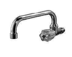 KAJA Spültisch-Wand-Schwenkventil CLASSIC Kronengriff, chrom, U-Auslauf 200mm, Markierung blau KJ304081C
