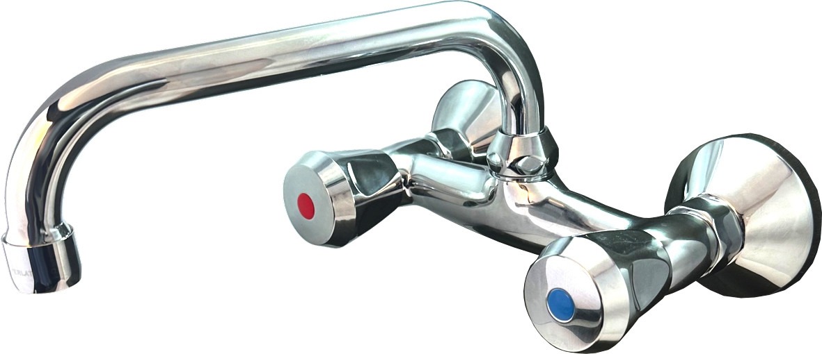 KAJA Spültisch-Wand-Zwei-Griff-Armatur CLASSIC U-Auslauf 200mm, Kronengriff, chrom KJ310051C