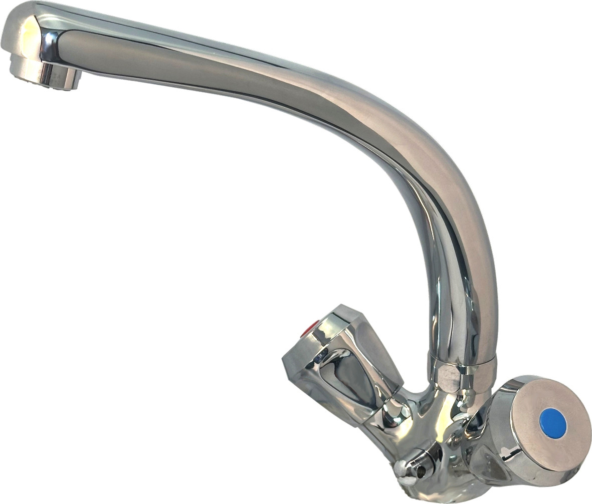 KAJA Spültisch-Zwei-Griff-Armatur CLASSIC Kronengriff, chrom, Gussschwenkauslauf, Kettenhalter KJ316111C