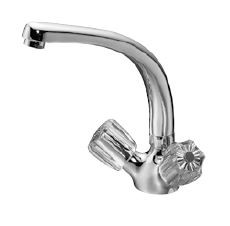 KAJA Spültisch-Zwei-Griff-Armatur CLASSIC Kronengriff, chrom, Gussschwenkauslauf, glatter Körper