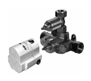 Durchflussklasse B, Durchflussmenge 19 l/min bei 3 bar Fließdruck, ein integriertes Absperrventil mit Keramik-Dichtscheiben für Anschluss G 1/2 oben, Anschluss G 1/2 unten (mit Blindstopfen, ungeregelt), Vorabsperrung, eingebaute Rückflussverhinderer, austauschbare Temperaturregeleinheit mit Dehnstoffsteuerelement, Einbaukasten mit Putzschablone