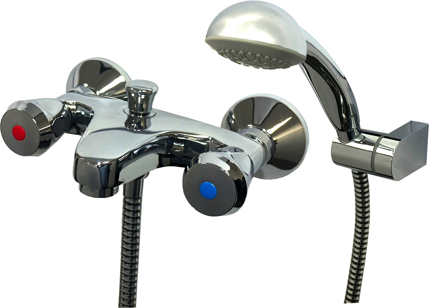 KAJA Wannen-Zwei-Griff-Armatur CLASSIC ABS-Griff, chrom, Brausegarnitur mit Metalleffektschlauch KJ251024C