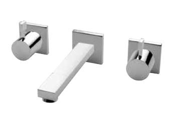KAJA Waschtisch-Drei-Loch-Wand-Armatur B-Quadrat Auslauf 165mm, chrom