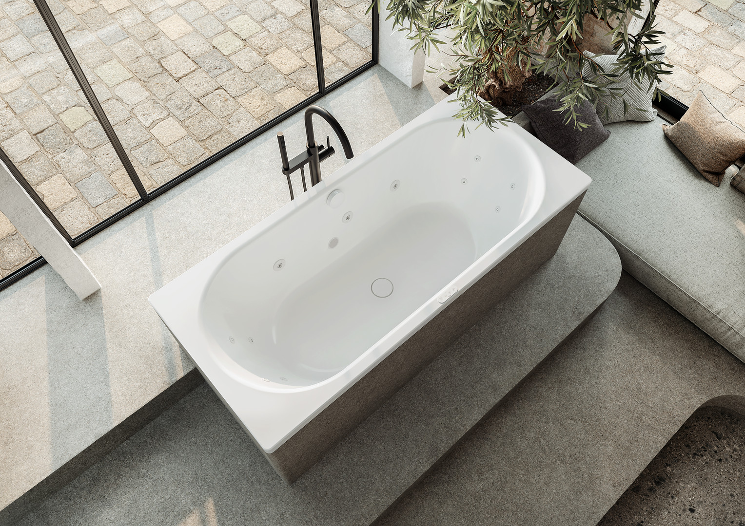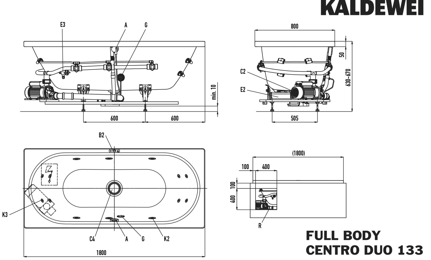 KALDEWEI CENTRO DUO, Mod.133 FULL BODY 1800x800mm, cool grey 90, links, Sichtteile schwarz matt 100