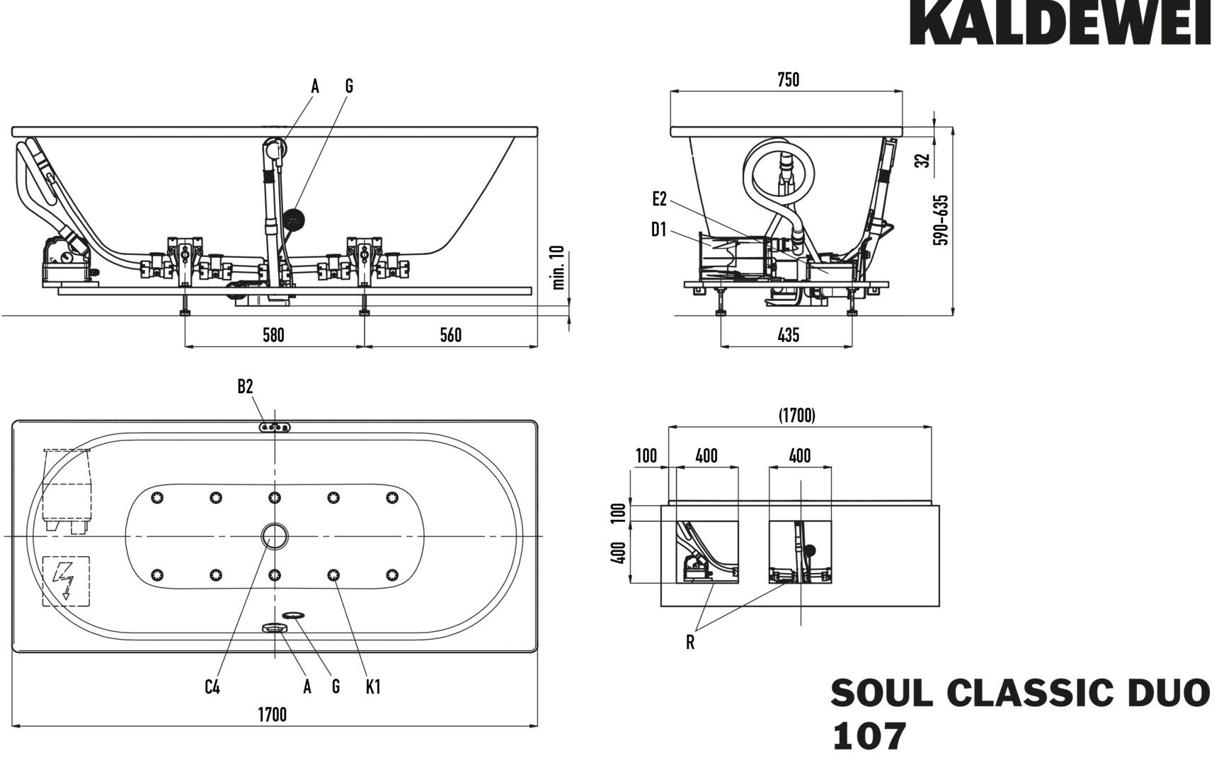 KALDEWEI CLASSIC DUO, Mod.107 SOUL 1700x750mm, alpinweiß, links, Sichtteile chrom