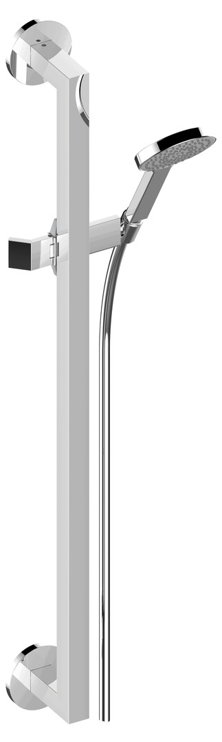 Brausestange (59085010901): Höhe 990 mm, Rosetten rund, Brauseschieber für Schläuche mit konischer Mutter, Brausehalter wahlweise links oder rechts, Neigungswinkel verstellbar, mit Fliesenausgleichsscheibe (5 mm), Handbrause (51180010300): Anschlussart: G 1/2, Normalstrahl, mit Antikalk-System, Durchflussmenge begrenzt auf 12 l/min, für Durchlauferhitzer geeignet, geräuschgeprüft, Brauseschlauch (54995011600): Länge 1600 mm, Anschlussart: G 1/2, beidseitig konische Mutter, beidseitig verdrehgesichert, Kunststoffschlauch, mit Knickschutz