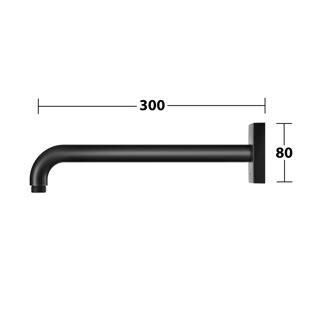 KEUCO Brausearm Ausladung 300 mm, schwarz matt, Rosette eckig, Wandmontage