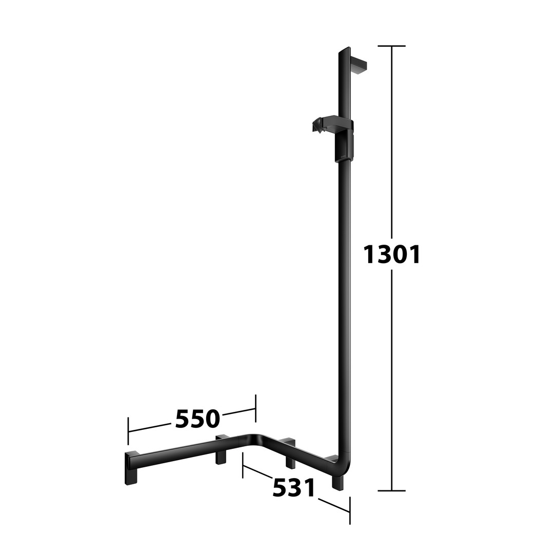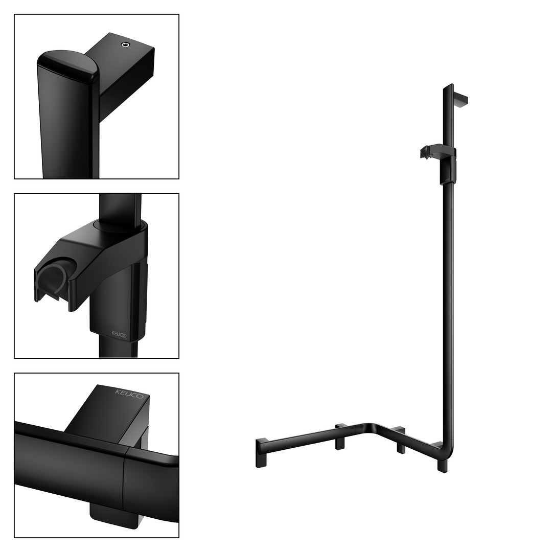 KEUCO Duschhandlauf AXESS Care 550 mm, schwarz matt, mit seitlicher Brausestange, rechts