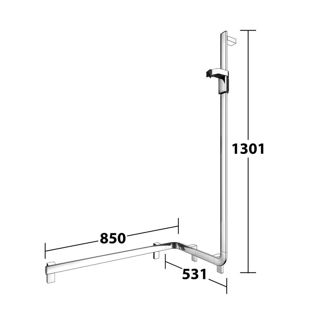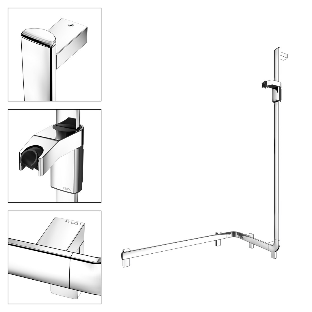 KEUCO Duschhandlauf AXESS Care 850 mm, verchromt, mit seitlicher Brausestange, rechts