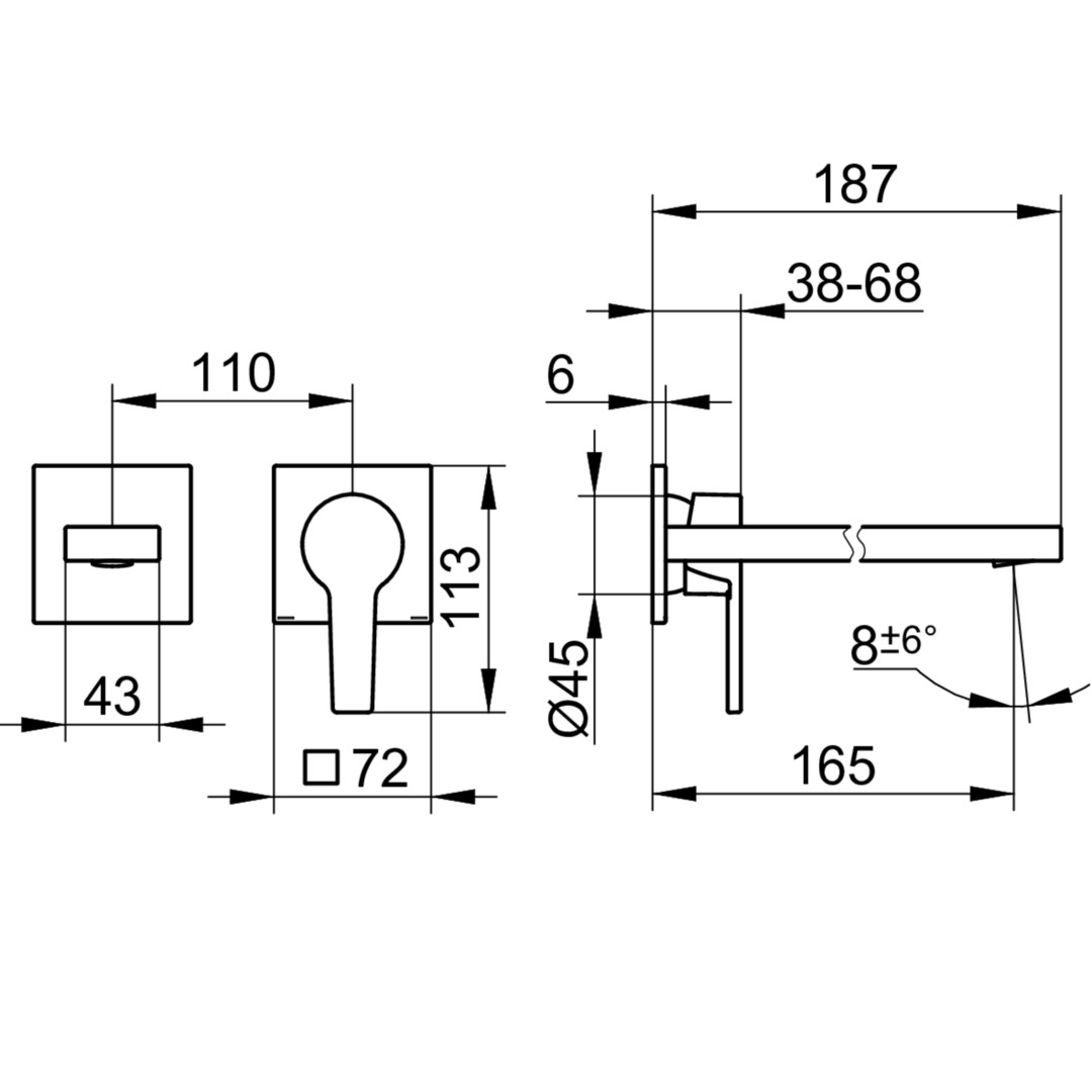 Rosette eckig, Anschlussart Grundkörper G 1/2, Mischwasserkartusche mit keramischen Dichtscheiben, mit Temperaturbegrenzung, Strahlregler M 24 x 1, Strahlwinkel +/-6° verstellbar, Durchflussmenge begrenzt auf 7,6 l/min, für Durchlauferhitzer geeignet, geräuschgeprüft