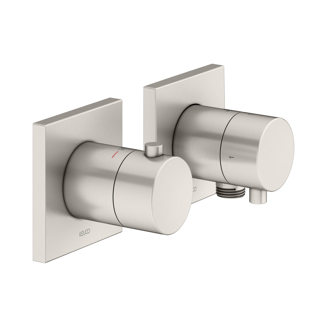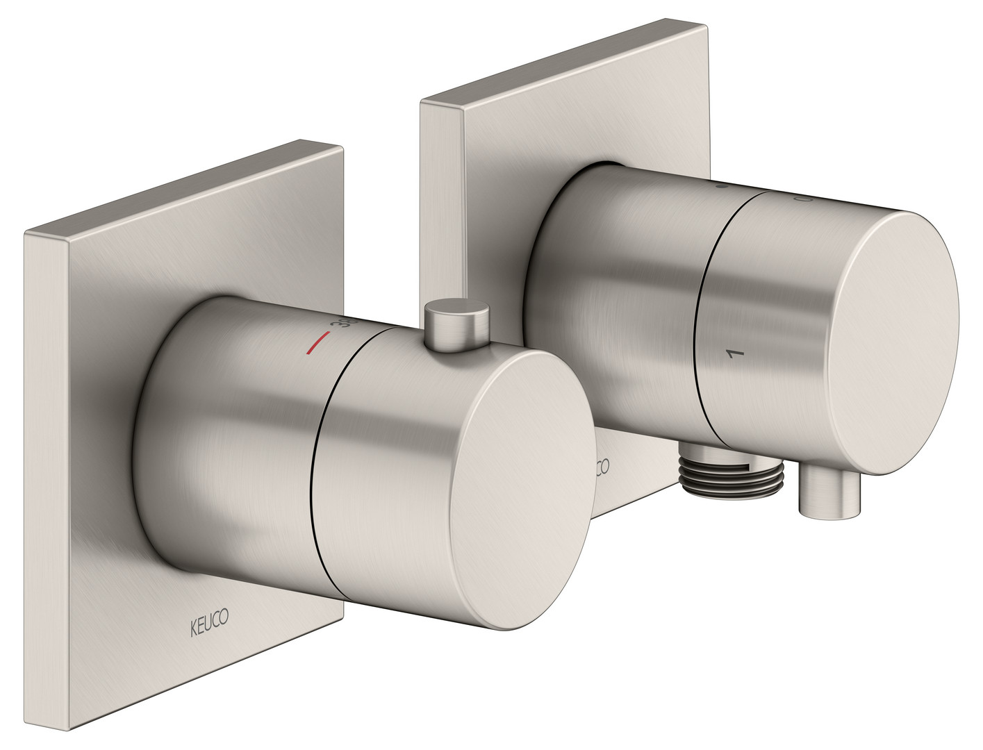 KEUCO Fertigmontageset Edition 11 Unterputz-Thermostatarmatur, mit Schlauchanschluss, für 2 Verbraucher, nickel gebürstet