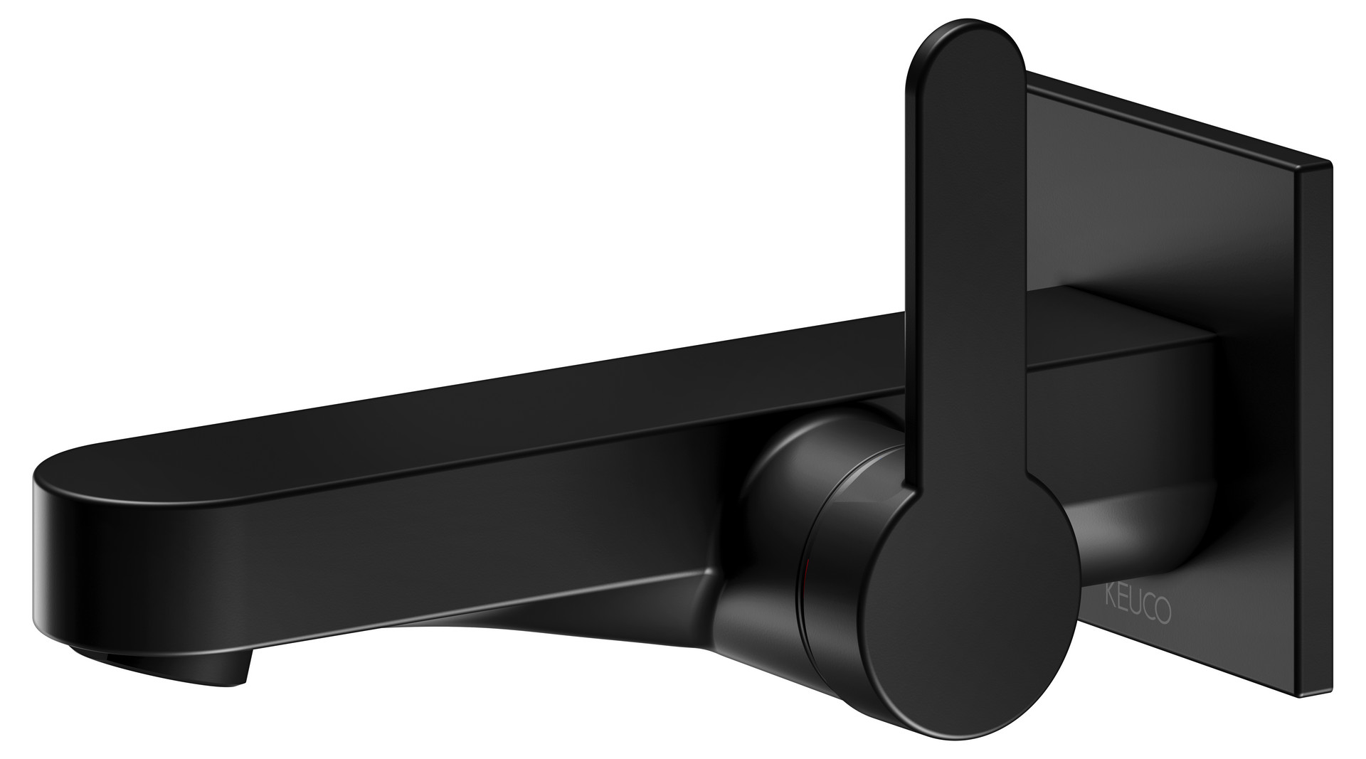 KEUCO Fertigmontageset IXMO Flat UP-Waschtisch-Einhebelmischer, ohne Ablaufgarnitur, Rosette eckig, Ausladung 225 mm, schwarz matt KE59516371302