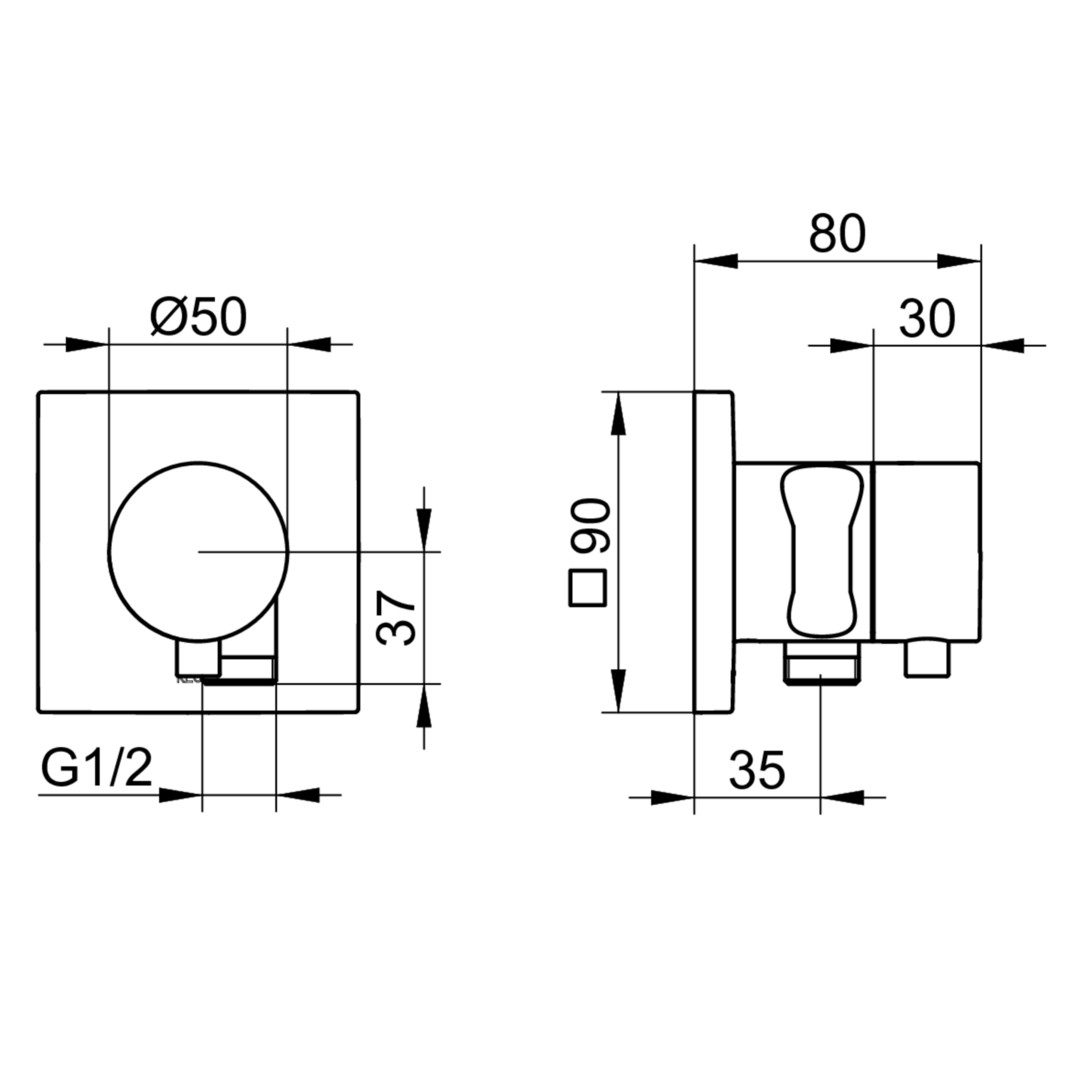 KEUCO Fertigmontageset IXMO UP-Umstellventil, Rosette eckig, ohne Absperrung, schwarz matt