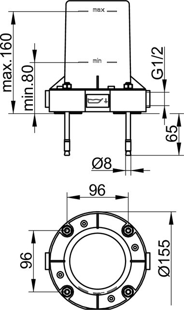 KEUCO Grundkörper Einbautiefe 80-160mm, für Wannen-Einhebelmischer, bodenstehend