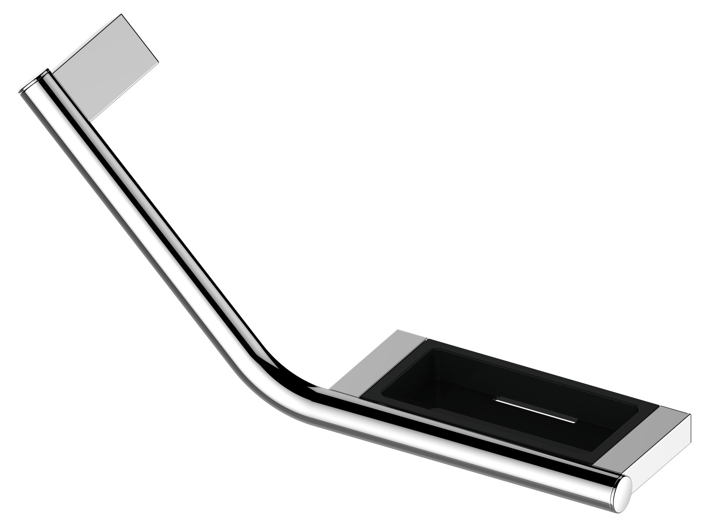 KEUCO Haltegriff Plan 135Grad, mit Seifenablage, links, Edelstahl/schwarz KE14909072037