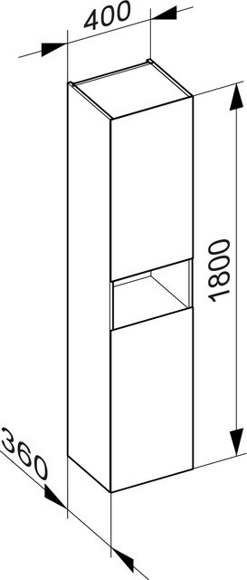 Anschlag links, Öffnung durch seitlichen Eingriff, mit Anschlagdämpfung, Wandmontage, Ausstattung offenes Ablagefach über die ganze Breite, 4 herausnehmbare Glasböden, 2 feste Mittelböden