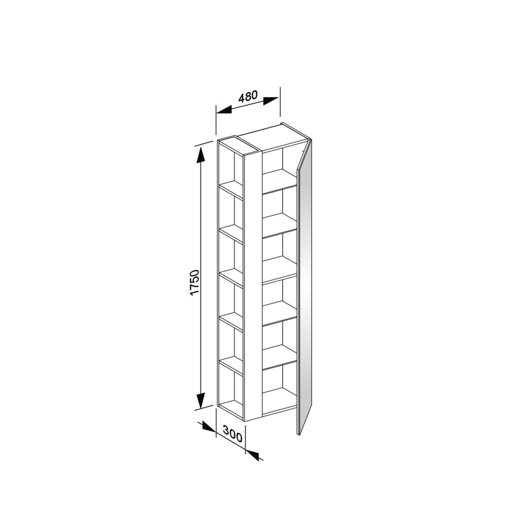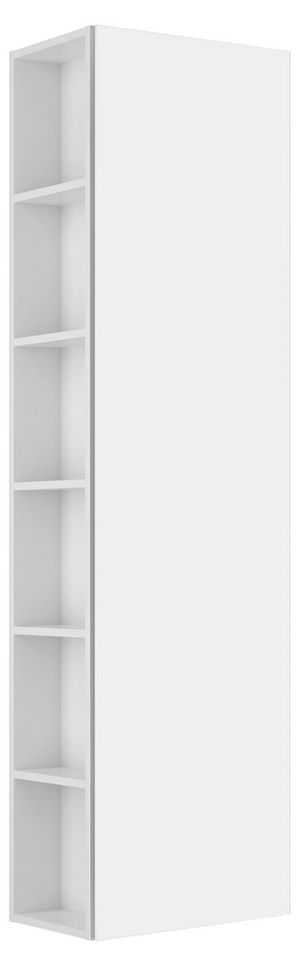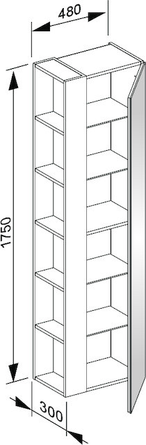 Anschlag rechts, Öffnung durch seitlichen Eingriff, mit Einzugsdämpfung, Wandmontage, Ausstattung Seitenregal links mit 6 Fächern, 4 herausnehmbare Glasböden, 1 fester Mittelboden
