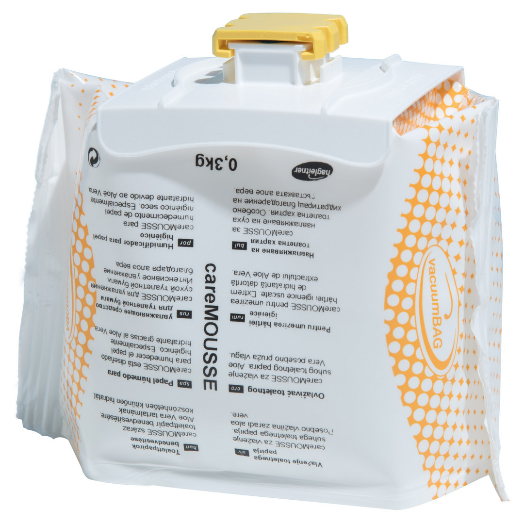 im VacuumBag, geeignet zum Befeuchten von trockenem Toilettenpapier, reinigender Schaum, feuchtigkeitsspendend, dermatologisch auf Irritationen und Allergien getestet, ph-neutral, Hersteller careMOUSSE: Hagleitner Hygiene International GmbH, 6x 300 ml, passend für 14956xx0337, 14956xx1337, 14956xx0437, 14956xx1437