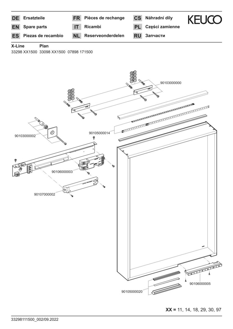 KEUCO Lichtspiegel X-Line 460 x 850 x 105 mm, Inox, mit Spiegelheizung, Lichtfarbe einstellbar KE33298291000