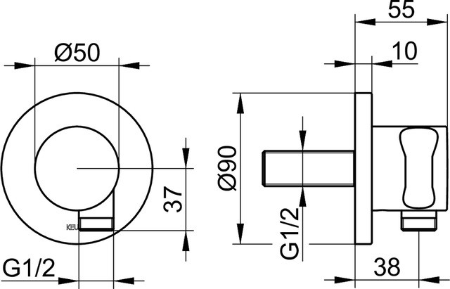 KEUCO Schlauchanschluss Rosette rund, mit Brausehalter, verchromt